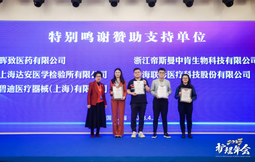 此次大会的成功召开还得到了晖致医药有限公司、浙江帝斯曼中肯生物科技有限公司、上海联影医疗科技股份有限公司、上海达安医学检验所有限公司、碧迪医疗器械(上海)有限公司等企业的大力支持和倾情赞助。上海市社会医疗机构协会老年护理分会张惠琴会长向赞助企业代表颁发感谢状,对他们支持分会工作、共同助推老年护理事业发展表示感谢。