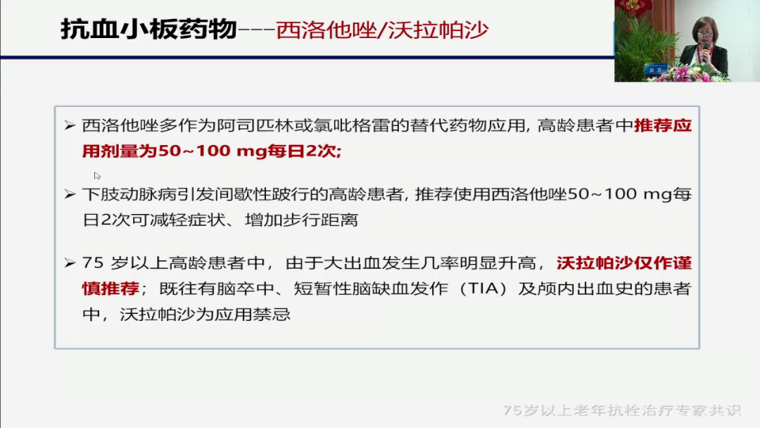 另外我们还常用的譬如叫培达西洛他唑,这个药我们可以用完,我们看到的也是可以用的,但是尽量注意。我们上次我们病房里有一位患者,我们请了神经科医生来会诊,他西洛他唑给了100毫克BID,那这个剂量显而来见,对于老年人来说并不是太适合,我们看到的剂量是50毫克BID我们最最比较稳妥,因为确实我们要关注到他高出血的一个特点。