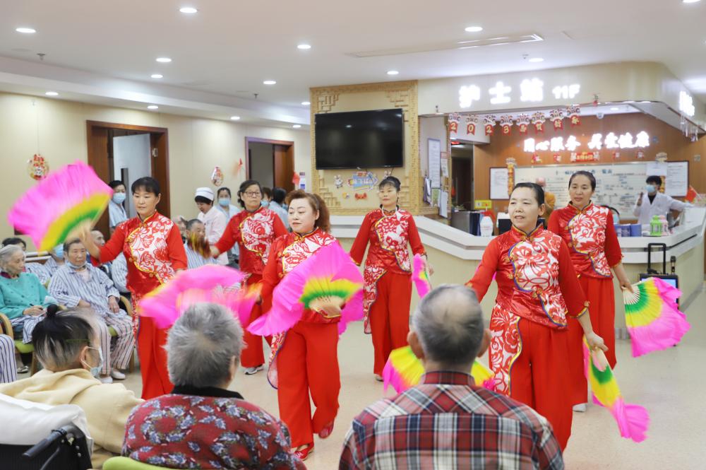 3月8日女神节当天,医院病区还举办了丰富的节日活动。活动伊始,主持人和老人们亲切互动3.8妇女节的由来和意义。活动中,医院护工为老人们带来了欢快的歌舞,并实时与老人们互动,让老人们充分感受到节日的氛围和快乐。
