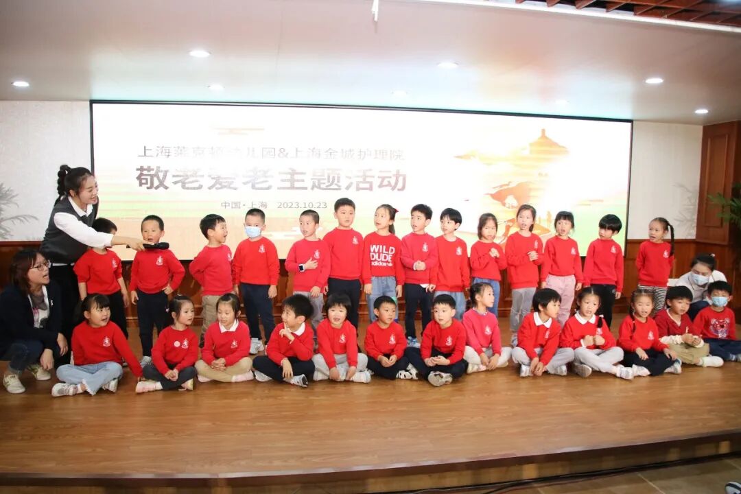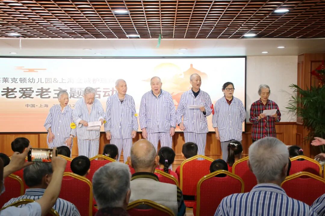 上海金城护理院的长者们则通过表演合唱《最美夕阳红》向幼儿们表达感谢,现场洋溢着温暖和幸福的氛围。