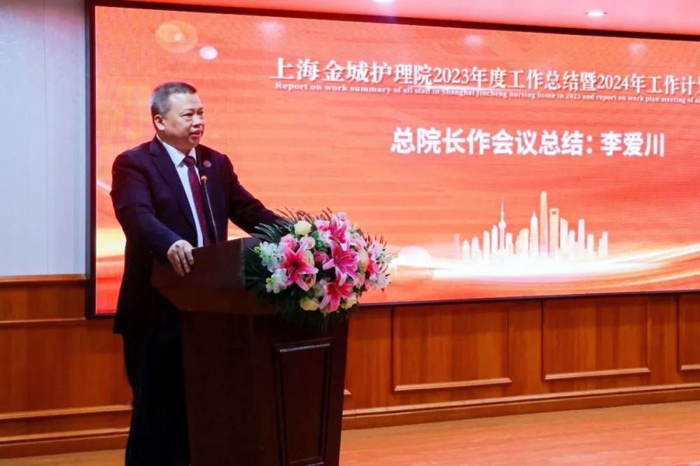 东方华康医疗集团总裁、总院长李爱川发表开幕致辞。李总院长充分肯定了上海金城护理院2023年取得的成绩,对全体员工的辛勤付出和专业精神表示赞赏与感谢。随后,总院长深入阐述了2024年康复护理领域的新趋势和医院发展目标,并强调了适应时代变革、提升服务水平的重要性。他鼓励全体管理干部和员工团结一心,共同努力,为实现医院更大的发展目标而努力奋斗。