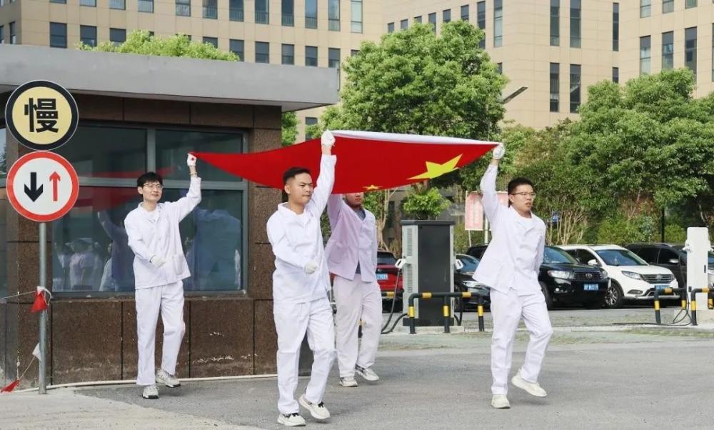 伴着雄壮激昂的国歌奏响,鲜艳的五星红旗迎风冉冉升起,全体医务人员肃立,面向国旗,齐声高唱国歌,歌声嘹亮,回荡在医院的每一个角落。他们的目光坚定而深情,这一刻,每个人的心中都充满了自豪与骄傲,为身为中国人而自豪,为祖国的繁荣昌盛而骄傲。