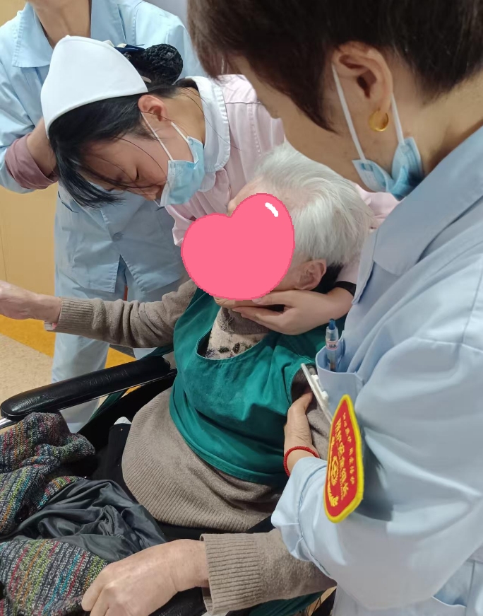 此时,其他医护人员也陆续赶到现场。护工组长迅速给予老人拍背,其他护士则协助将假牙取出。经过大约两分钟的紧张抢救,蒋奶奶口中的假牙终于被成功取出,她的呼吸也逐渐恢复了平稳,面色也慢慢变得红润起来。