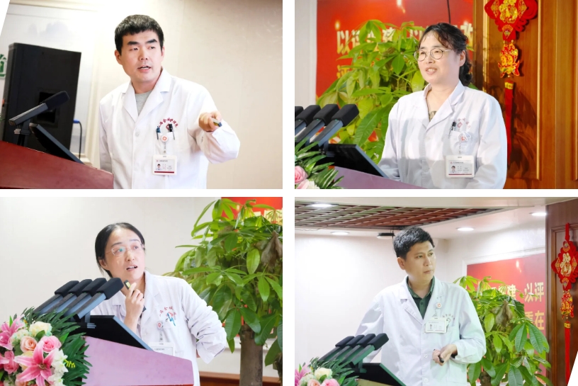 病区主任们首先就各病区当前的医护团队配置状况展开介绍,随后结合各科室实际状况,围绕一季度科室运营、医保管理、业务学习、医疗服务工作进行汇报。其中着重回顾了科室管理、病例抽检、医疗质量把控、服务品质提升、业务知识学习、不良事件处理以及家属满意度等多方面工作。