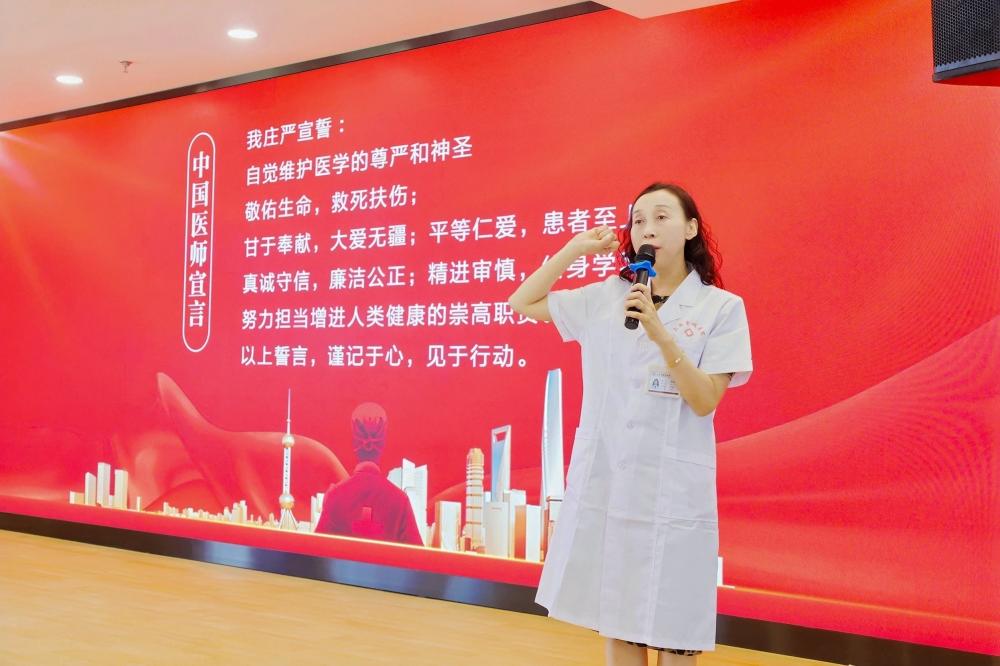 7 位医师代表先后上台发言,分享了他们在临床一线的工作经历和深刻感悟,表达了对医学事业的无限热爱以及对患者的强烈责任感。