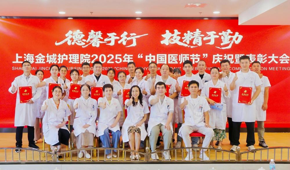 为庆祝第八个中国医师节,激励全院医务人员继续弘扬 “敬佑生命、救死扶伤、甘于奉献、大爱无疆” 的崇高职业精神,上海金城护理院于8月15日举办了2025年中国医师节庆祝暨表彰大会。本次大会以“德馨于行 技精于勤”为主题,上海金城护理院院委会及全体医师齐聚一堂,共同庆祝这一属于医者的崇高光荣节日。