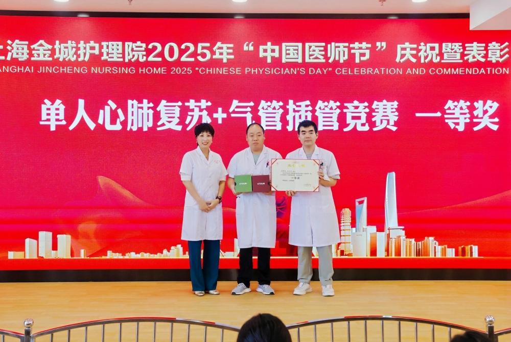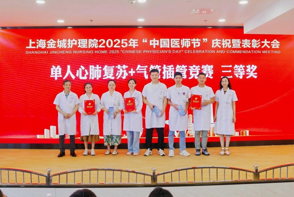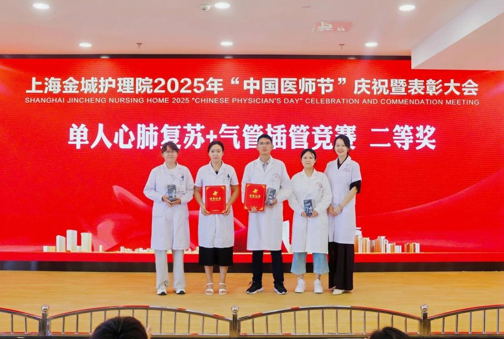 此前,为庆祝第八个中国医师节,激发医师们钻研业务、提升技能的热情,上海金城护理院开展了 2025 年抗菌药物知识竞赛、单人心肺复苏 + 气管插管竞赛评选活动。在本次大会上,对在这两项竞赛中脱颖而出的获奖者进行了隆重表彰。